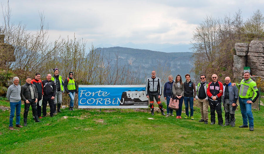 Dopo 2 anni di rinvii la magica visita rispetta il programma, da Cogollo del Cengio direzione Asiago, deviazione a Treschè Conca di Roana, tortuoso e interessante percorso che ci porta ai 1077 m del forte. Gruppo compatto, puntuale all’appuntamento e curiosi di queste 2 ore di storia prenotate, la nostra guida sarà Ilaria, moglie del motociclista Marco, che sono anche i proprietari/gestori della struttura. La costruzione del forte risale a qualche anno prima della Grande Guerra mondiale, il posto scelto è una meraviglia, il tutto si estende in 22.000 mq. La struttura è una geniale realizzazione di ingegneria militare: trincee coperte, collegamenti sotterranei, un forno enorme per fare il pane o cucinare di tutto per una truppa che aveva anche 180 uomini in servizio.