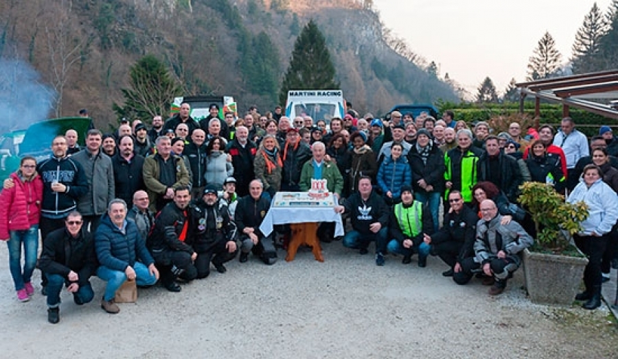 Son già passati 30 anni e inventare qualcosa di grande per l’evento era impresa ardua, roboanti idee ci mulinavano nel parcheggio della materia grigia. Oggi è il grande giorno, ve lo racconto in punta di piedi. Sono attese 4 macchine, 1 pilota mondiale e una valanga di gente. Lo staff Pompone è già pronto a dare il benvenuto con brulè, pizzette e dolci carnevaleschi, il Bruno un po’ in ritardo accende i tronchi che ardono (fontane finlandesi) e iniziano gli arrivi. Intanto arrediamo il parcheggio con una Audi da autocross, una Lancia 037 Martini, una Lancia S4 Totip e dopo un tremendo boato si vede la linea di una favolosa Stratos. Ore 11.00 e qualcosa arriva il maestro Franco Gritti, igrande campione di enduro, partito da Bergamo per mantenere una promessa che latitava da 2 anni. A pranzo, il menù supervisionato dal motocuoco Davide (minestrone, risotto zucca e shitake, brisket di manzo su purè di sedano rapa): lo staff della cucina era fiero di ricevere dei sani complimenti al riguardo. E’ gran festa, vorrei quasi dire il miglior Motowinter di sempre, un incontro di bella gente. Gran lavoro anche per i nostri due fotografi, Emanuele Sartori e Carlo Bortolazzo. Che sorpresa il volo del drone, idea di Enrico Scaglia, sarà una visione inusuale del Motoristorante e dei momenti salienti del Motowinter numero 30. A festa quasi finita, noi del Pompone volevamo ringraziare Lorenzo Mazzetto, Emilio Compagno e Libero Savio per averci deliziato con la presenza delle super macchine, di Franco Gritti star dell’evento, di Emanuele il fotografo che ha lasciato la sua Venezia per venire in Valle San Liberale. GRAZIE anche a tutti coloro che hanno reso incandescente questa domenica 28 gennaio 2018.